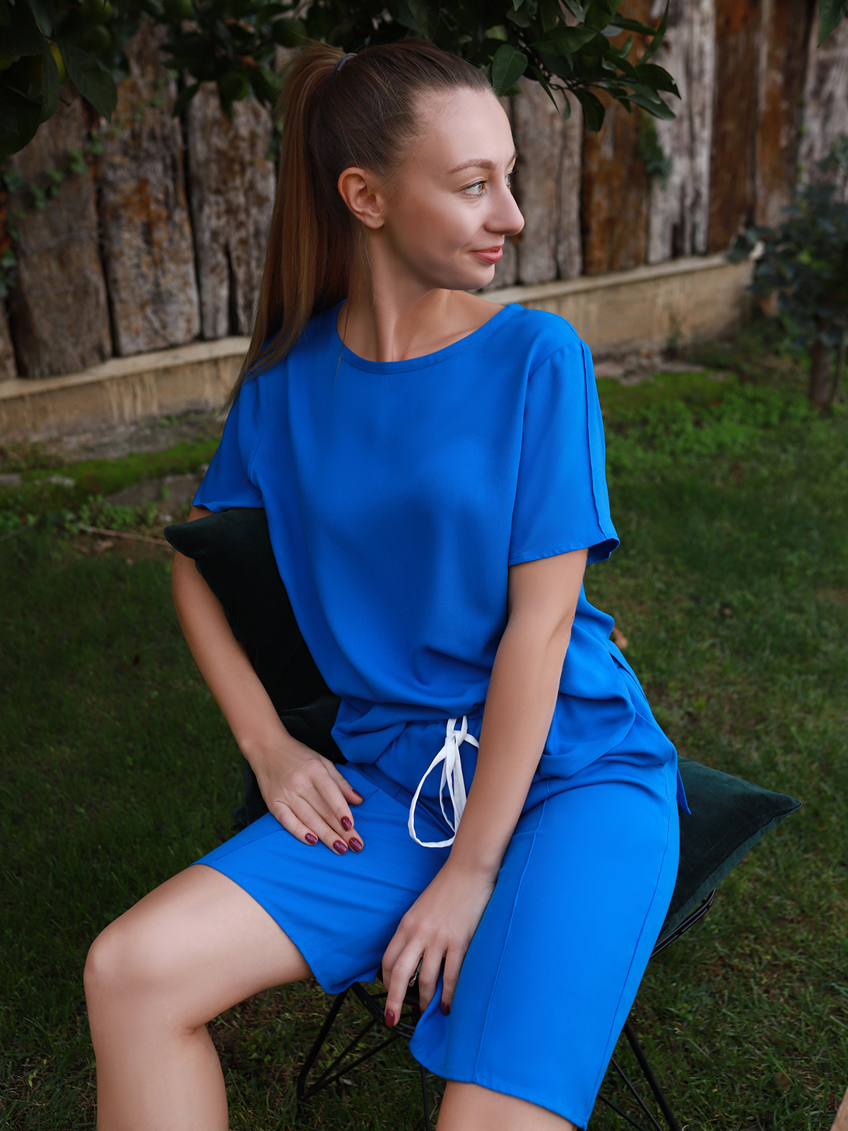 Свободную футболку с разрезом по боковому шву можно либо заправлять в шорты, либо носить на выпуск, создавая более расслабленный силуэт. Ничего в этом костюме не будет мешать выполнению домашних дел.