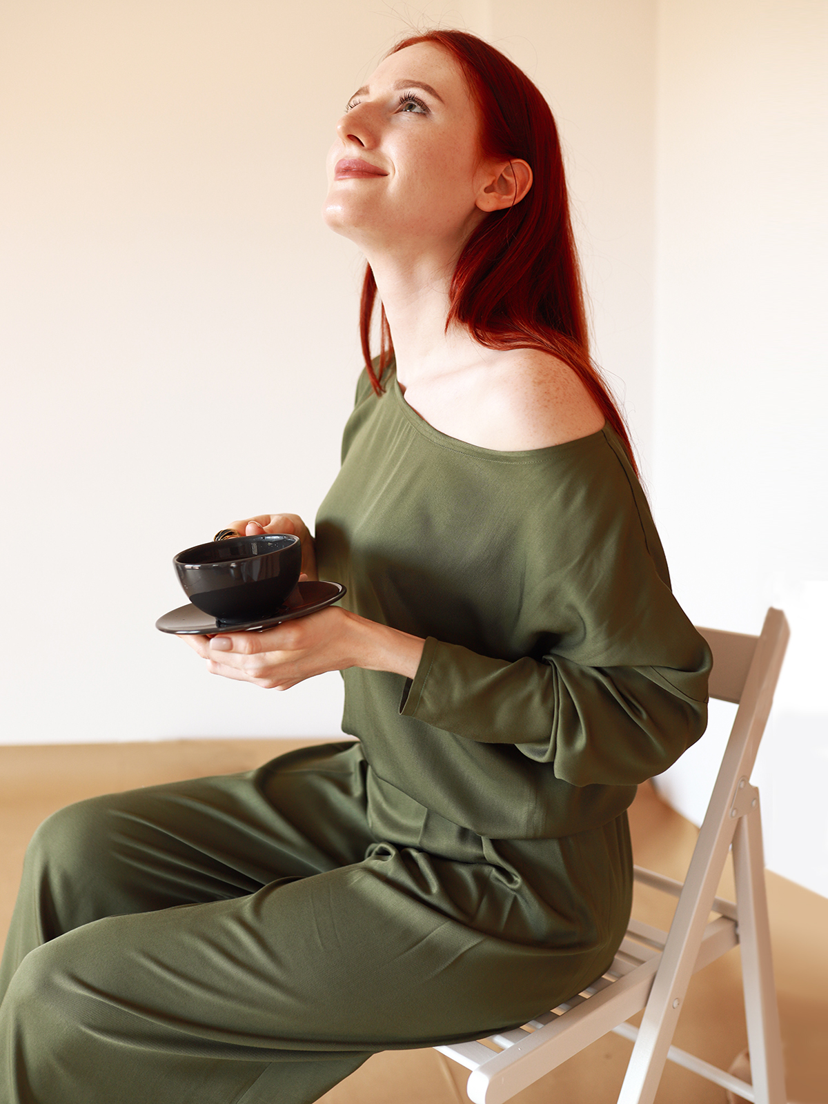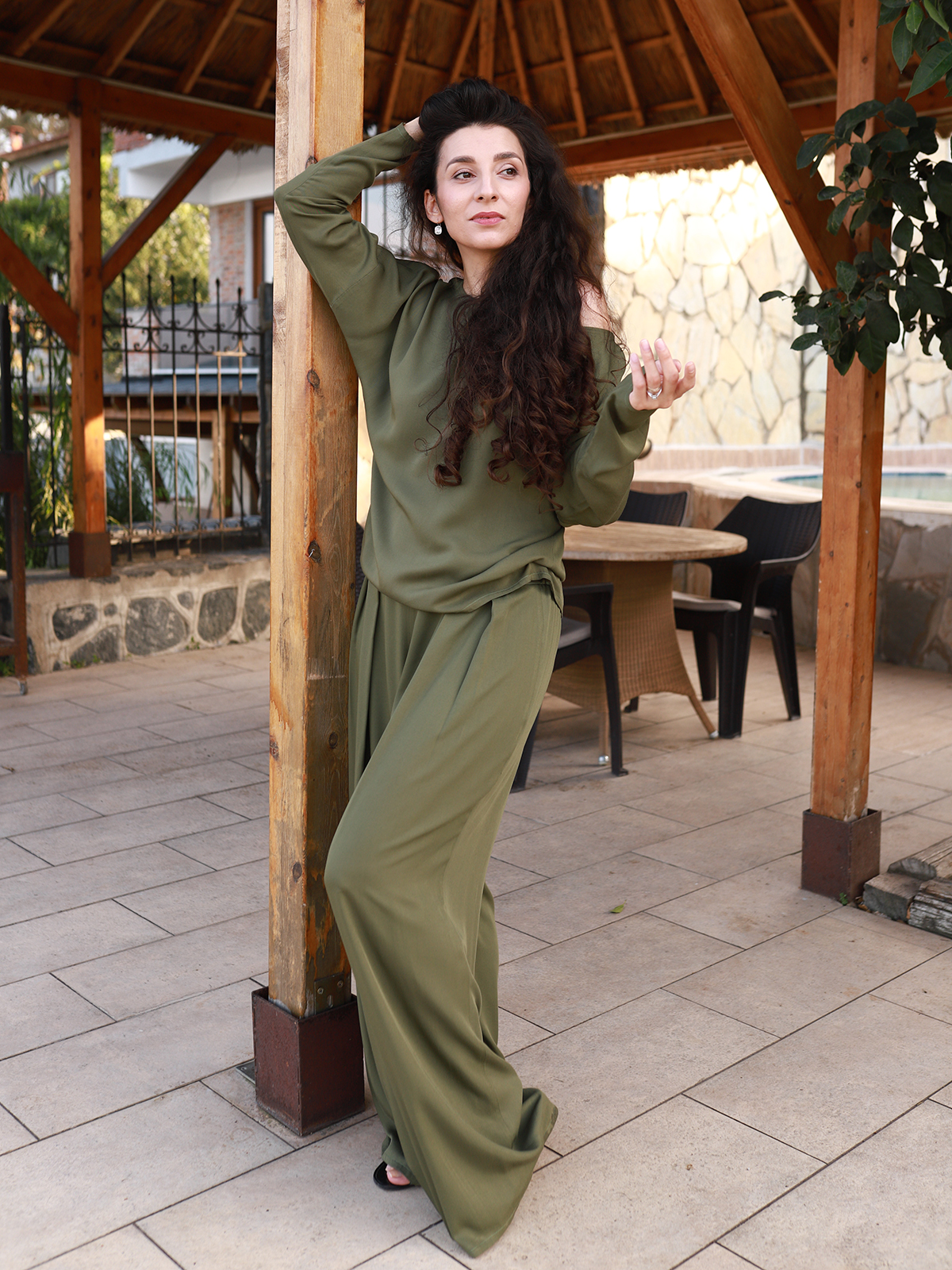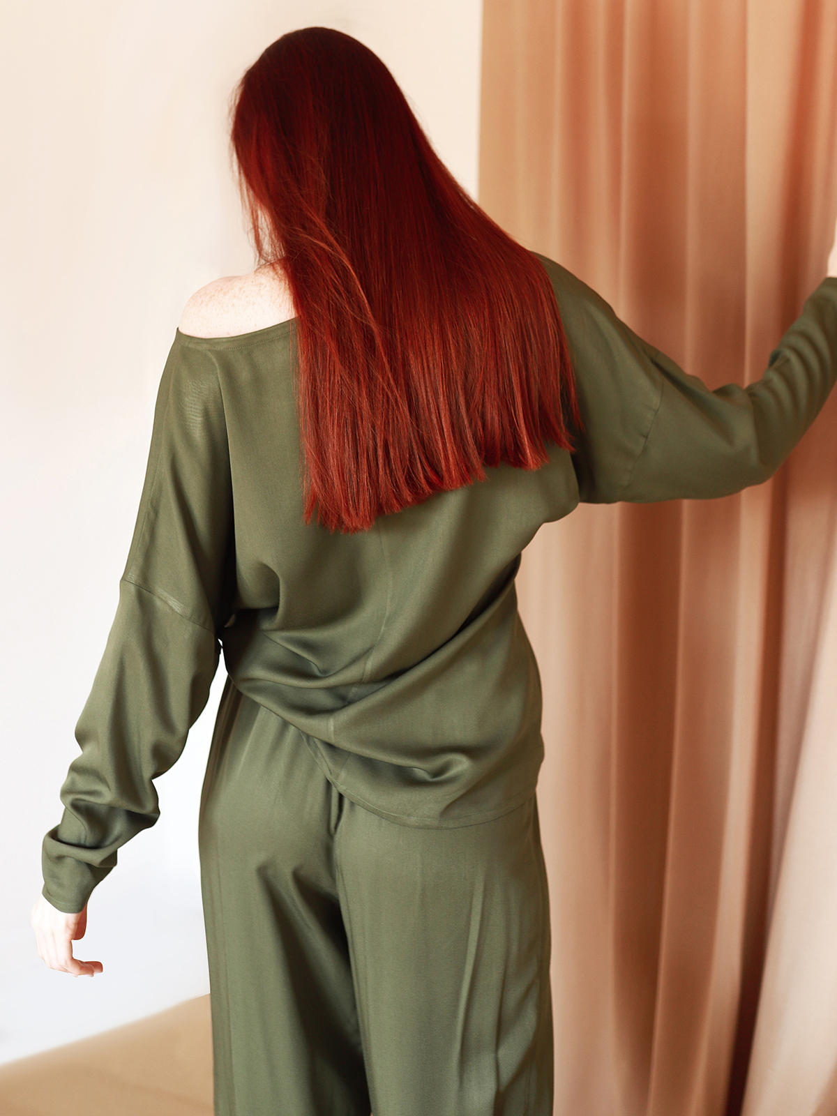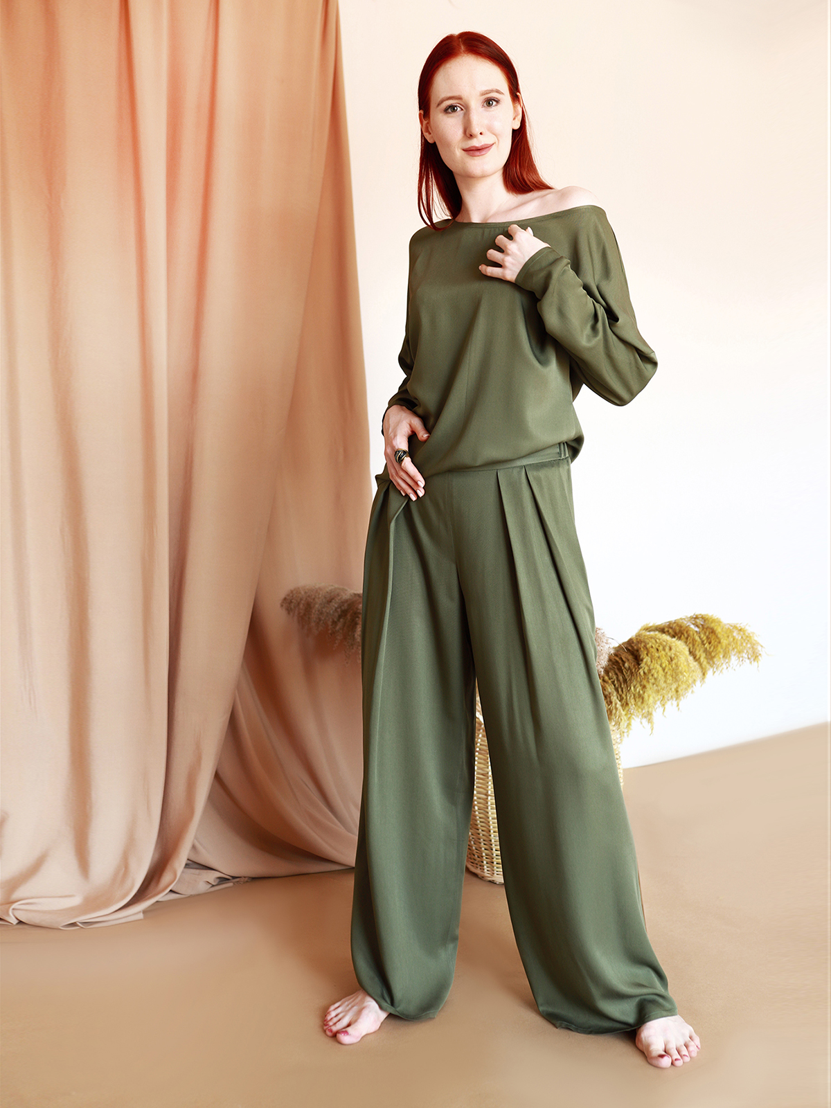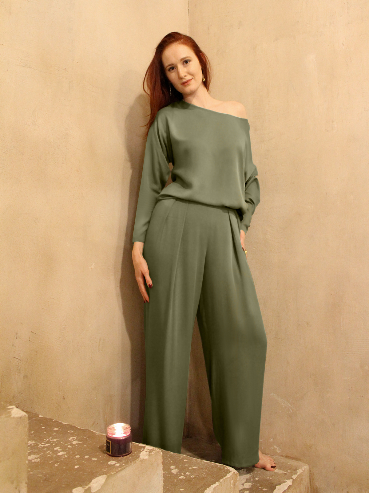 Описание: Моника – домашний костюм сложного кроя с отсылками к японской стилистике.